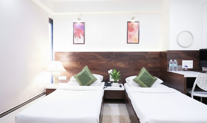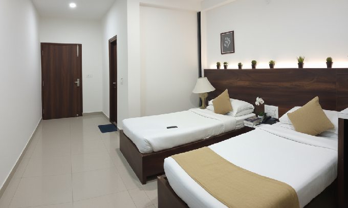 Perfect for colleagues, friends, or small families, the AC Room with Twin Beds combines generous space with contemporary elegance. Designed to offer flexibility and comfort, complemented by soft lighting and tasteful interiors that create a warm and inviting atmosphere.